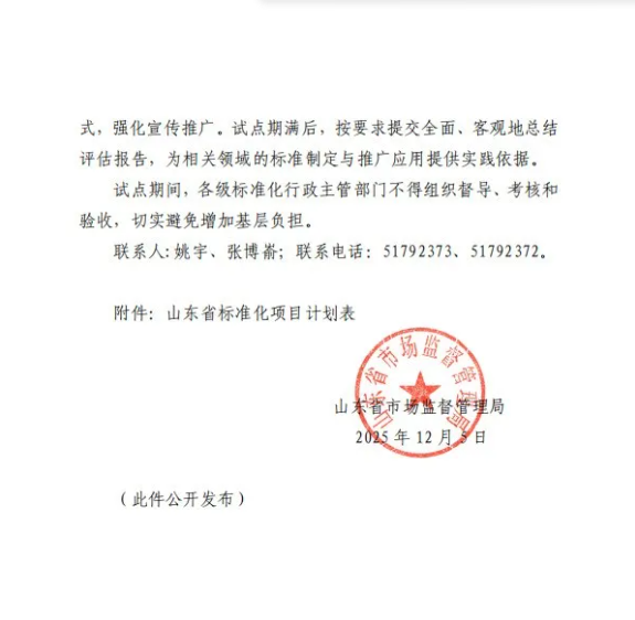 为贯彻《国家标准化发展纲要》,落实《山东省人民政府关于贯彻<国家标准化发展纲要>推进标准化创新发展的实施意见》(鲁政发〔2022]6号)部署,经各市市场监管局和省有关部门推荐、材料审查、专家